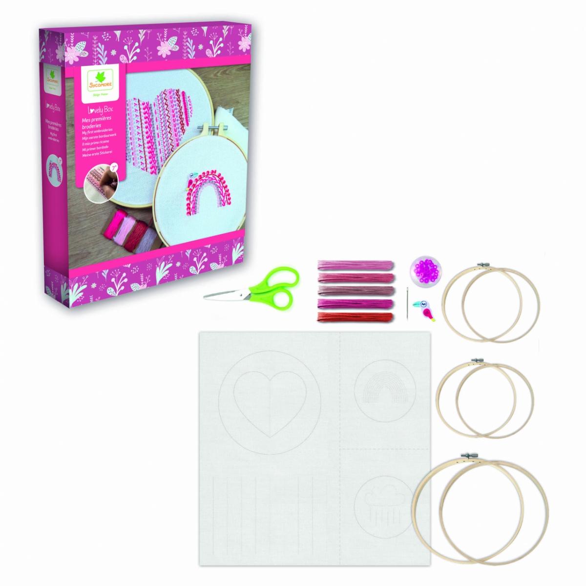 SYCOMORE loovkomplekt esimeseks tikkimiseks - armas kast. See on suurepärane loominguline komplekt tulevastele õmblejatele, mis võimaldab esmakordselt tikkida lõbusaid pilte.Toote omadused:1 suur (20 cm) rõngas ja 2 väikest (10 cm) rõngast.Kolm puuvillast kangast, millel on trükitud pildid ja mis on valmis tikkimiseks.Üks paar kääre.Erinevat värvi niidid.1 kangas katsetamiseks ja õppimiseks.Kasutusjuhend pakendil.Soovitatav vanus 7+ aastat.