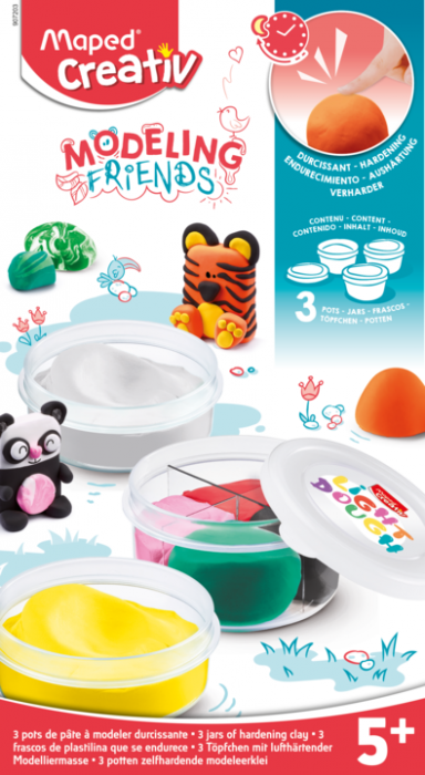 Maped Creativ modelleerimiskomplekt on pehme, mittekleepuv modelleerimismass Friendsi loominguliste komplektide jaoks või teie kunstiliste ideede realiseerimiseks!Toote omadused:Materjal kivistub iseenesest mõne tunni jooksul, ahjus kuivatamist pole vaja.Komplekti kuulub: 1 karp valget massi, 1 karp kollast massi ja 1 karp nelja värvi (must, roosa, punane ja roheline) massiga.