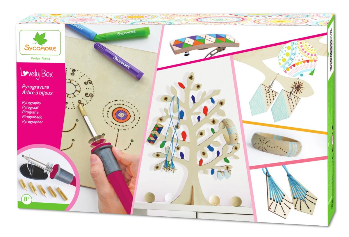 Õppige pürograafia kunsti!Komplekt sisaldab:• Pürograafia tööriist, millel on 5 vahetatavat punkti• Puidust ehtepuu (38 x 23 cm)• Puidust juukseklamber• Puidust käevõru• Paar puidust kõrvarõngaid• 4 puidust ripatsit parimatele sõpradele• Puidust laud (24 x 21 cm)• 4 m türkiissinine niit• 4 markerit (sinine, roheline, lilla, oranž)• Teip• JuhisedVanus: alates 8. eluaastast