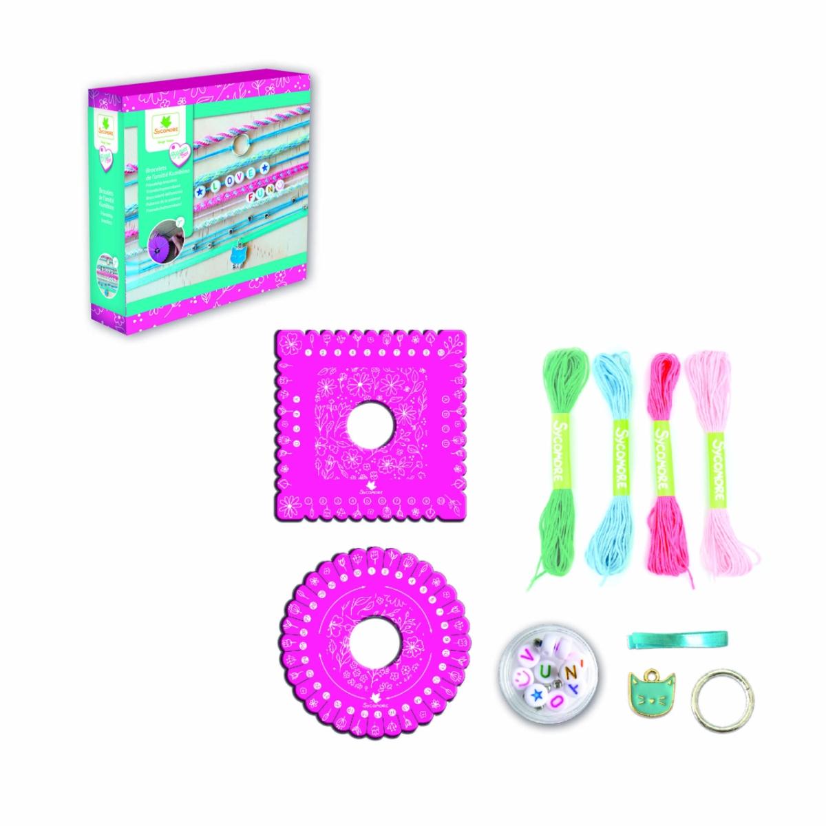 SYCOMORE käevõru valmistamise komplekt.Toote omadused:See kaunis karp sisaldab kõike, mida vajate endale ja oma sõpradele või perele suurepäraste käevõrude valmistamiseks.Komplekti kuulub: 250 suurt helmest, palju väikseid helmeid, 8 m paela ja niiti, amuletid, pompoonid, 6 klambrit, 10 sõrmust, kett, 1 tööriist ja 1 juhend.Pakendi mõõdud: 22 x 26 cm