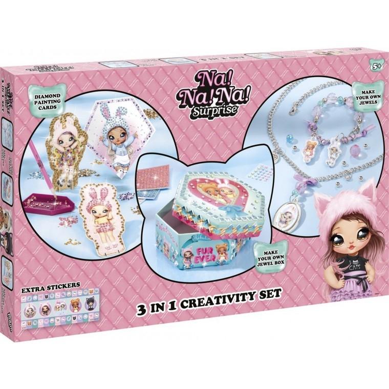 NA!NA!NA! moodne ehte- ja käsitöökomplekt.Omadused:Komplekt sisaldab 3 meisterdamistegevust: armsate ehete valmistamine, ehetekarp ja nukukaunistused.Ergutab loovust, õppides erinevaid tehnikaid.Pakendi suurus: 56 x 35 x 6 cm