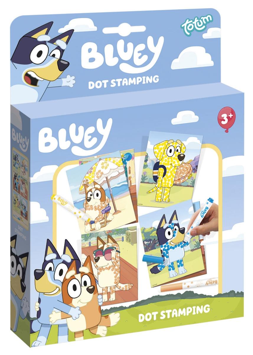 TOTUM BLUEY loominguline komplekt "Dot Stamp" - kaunista pilte templitega.Toote omadused:Komplekt sisaldab 6 Bluey-teemalist pilti, mida tembeldada kaasasolevate templitega.Pakendi mõõdud: 24,5 x 17,5 cm
