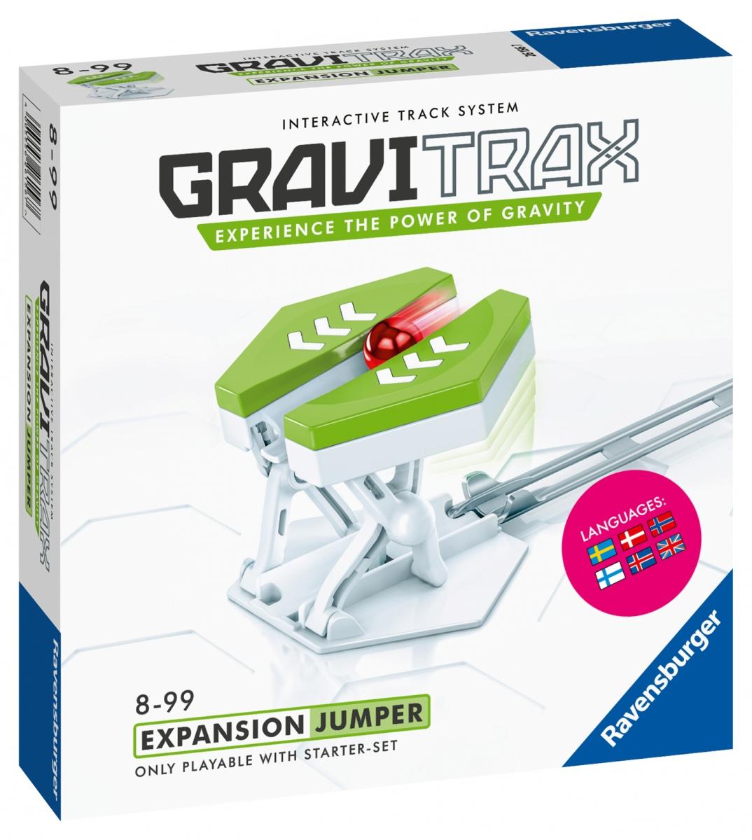Saavutage uued kõrgused! Täiustage oma GraviTraxi stardikomplekti JUMPERiga! See kinnitus tõstab tunneli loomisel palli kõrgemale. JUMPERi ühendamine GraviTraxi stardikomplektiga annab teile veel ühe uskumatu funktsiooni. Kas saate oma pallid hüppama panna?• Komplektis: JUMPER alus, 1 pikk plastikust rada, 2 keskmist plastikust rada, 3 lühikest plastikust rada, kasutusjuhend.