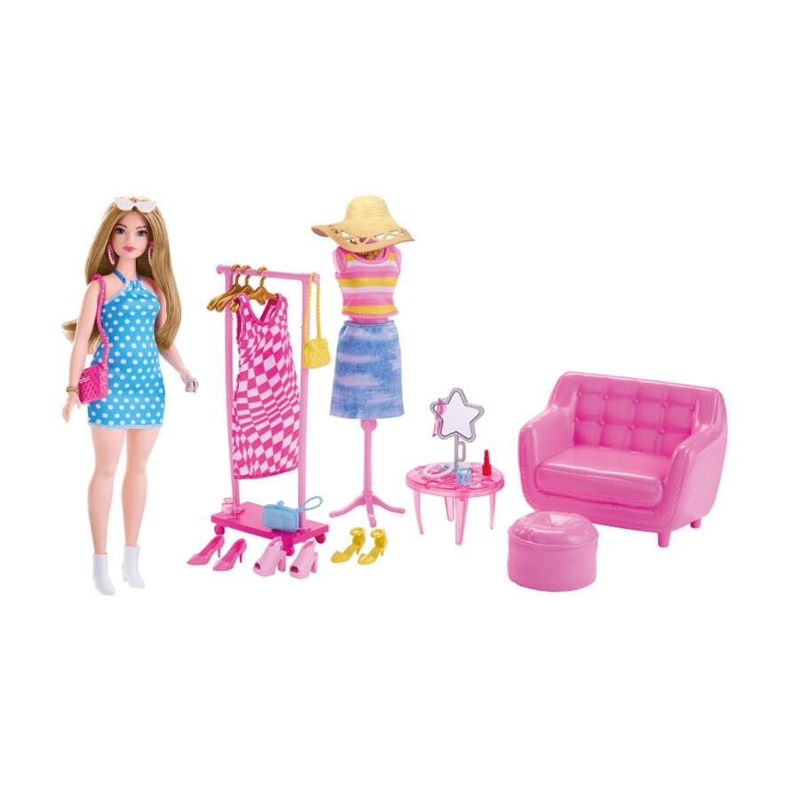 BARBIE nuku fashionista mööblikomplektiga.Omadused:Komplektis on nukk, riidepuu, diivan, laud, mannekeen, kingad, riided ja muud aksessuaarid.Komplekt arendab kujutlusvõimet ja on suurepärane kingiidee.