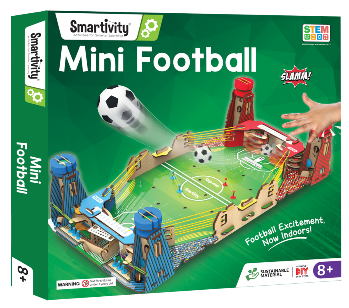 See SMARTIVITY komplekt võimaldab ehitada kodus oma mini jalgpallistaadioni, millest saab kindlasti lapse uus lemmikmäng.Toote omadused:See DIY STEMil põhinev mänguasi põhineb impulsi, kiirenduse ja liikumise ülekande teaduslikel kontseptsioonidel.See õpetab lastele inseneriteadusi ja arendab motoorseid oskusi lõbusal viisil, kui nad mängivad sõpradega mänge.Arendab lapse loovust, peenmotoorikat, annab enesekindlust.Kogu komplekt: 2 puitlehte osadega; 4 värvilehte; 192 lahtist osa; jalgpalli pall; üksikasjalik juhend.
