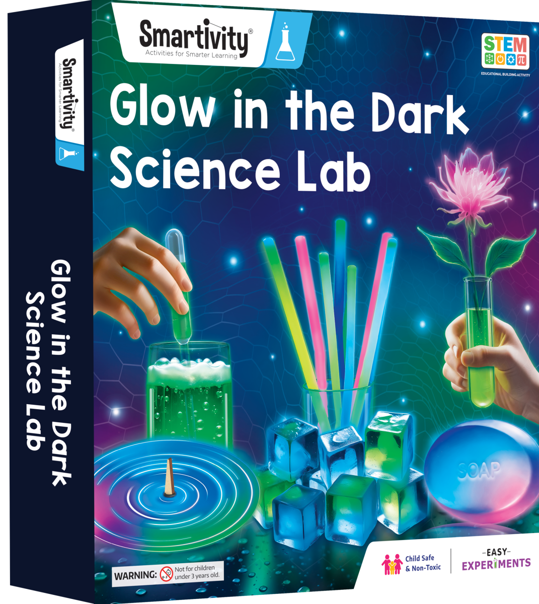 SMARTIVITY Glow in the Dark ehituskomplekti labor võimaldab luua laavalampe, valmistada lõbusaid helendavaid seepe ja kirjutada pimedas helendavaid sõnumeid.Toote omadused:Komplekt võimaldab lapsel tundma õppida erinevat tüüpi luminestsentsi, nagu kemoluminestsents, fosforestsents, fluorestsents ja palju muud.Arendab huvi keemia vastu.Komplekt sisaldab kõiki mängu jaoks vajalikke komponente ja üksikasjalikku, hõlpsasti järgitavat kasutusjuhendit.Pole mingit segadust, kuna mäng ei vaja liimi ega tööriistu.Arendab lapse loovust, peenmotoorikat, annab enesekindlust.Komplekti kuuluvad lapsele ohutud kemikaalid ja varustus (klaas, tassid, lusikas, kindad); juhiste vihik.