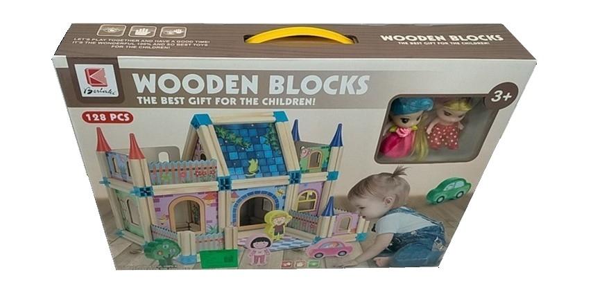 Puidust klotside komplekt, mis võimaldab ehitada suurejoonelise lossi.Toote omadused:Komplektis on ka kaks printsessi, kes asuvad lossis elama.Kõik osad on valmistatud puidust, seega kaitsevad loodust.Komplektis on 128 osa.Pakendi mõõdud: 33 x 46 x 7,6 cm