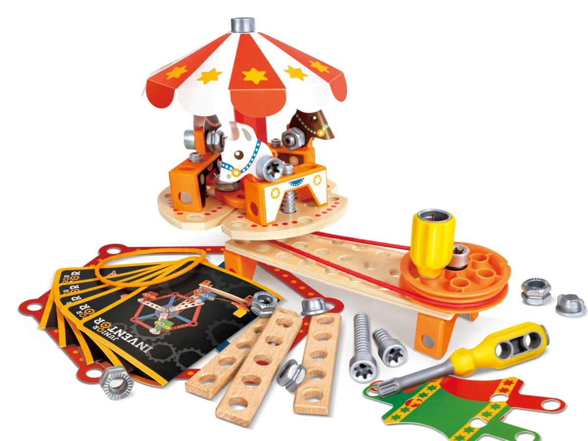 HAPE paljude ehitusvõimalustega puitkonstruktor.Toote omadused:Komplekt sisaldab juhiseid erinevate karussellide ja muude karnevaliteemaliste ehitiste ehitamiseks.Virnastatud konstruktoritel on liikuvad osad ja need täidavad mitmesuguseid funktsioone.Osade arv: 73