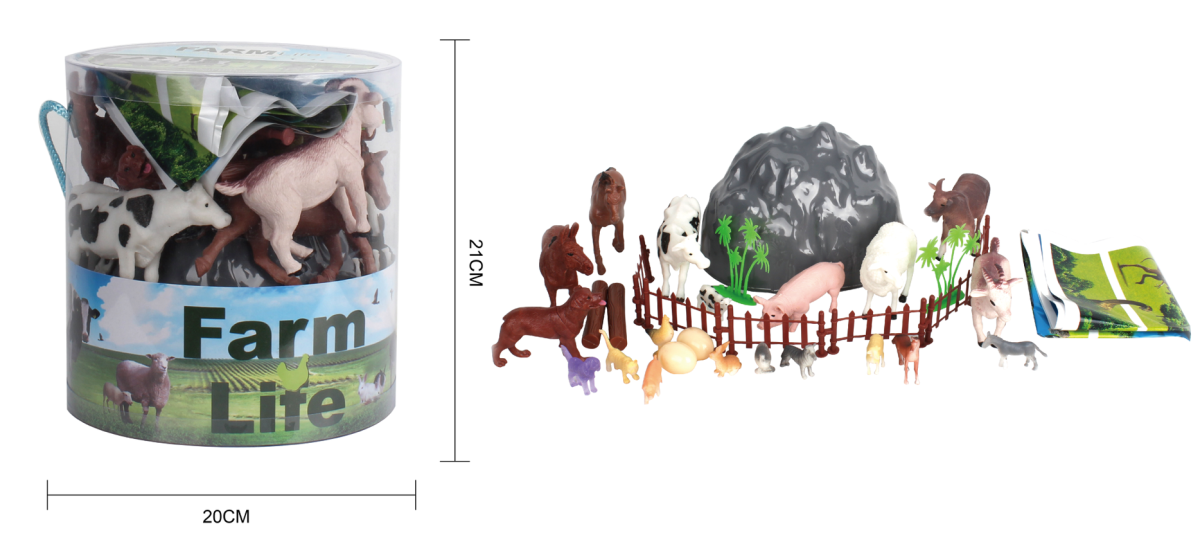Lõbus taluloomade kujukeste komplekt.Omadused:Komplektis on palju erinevaid põllumajandusloomade figuure ja muid tarvikuid.Lisaks leiad komplektist aluse, millel on mõnus mängida.