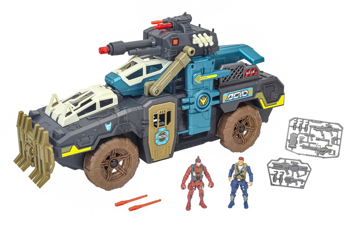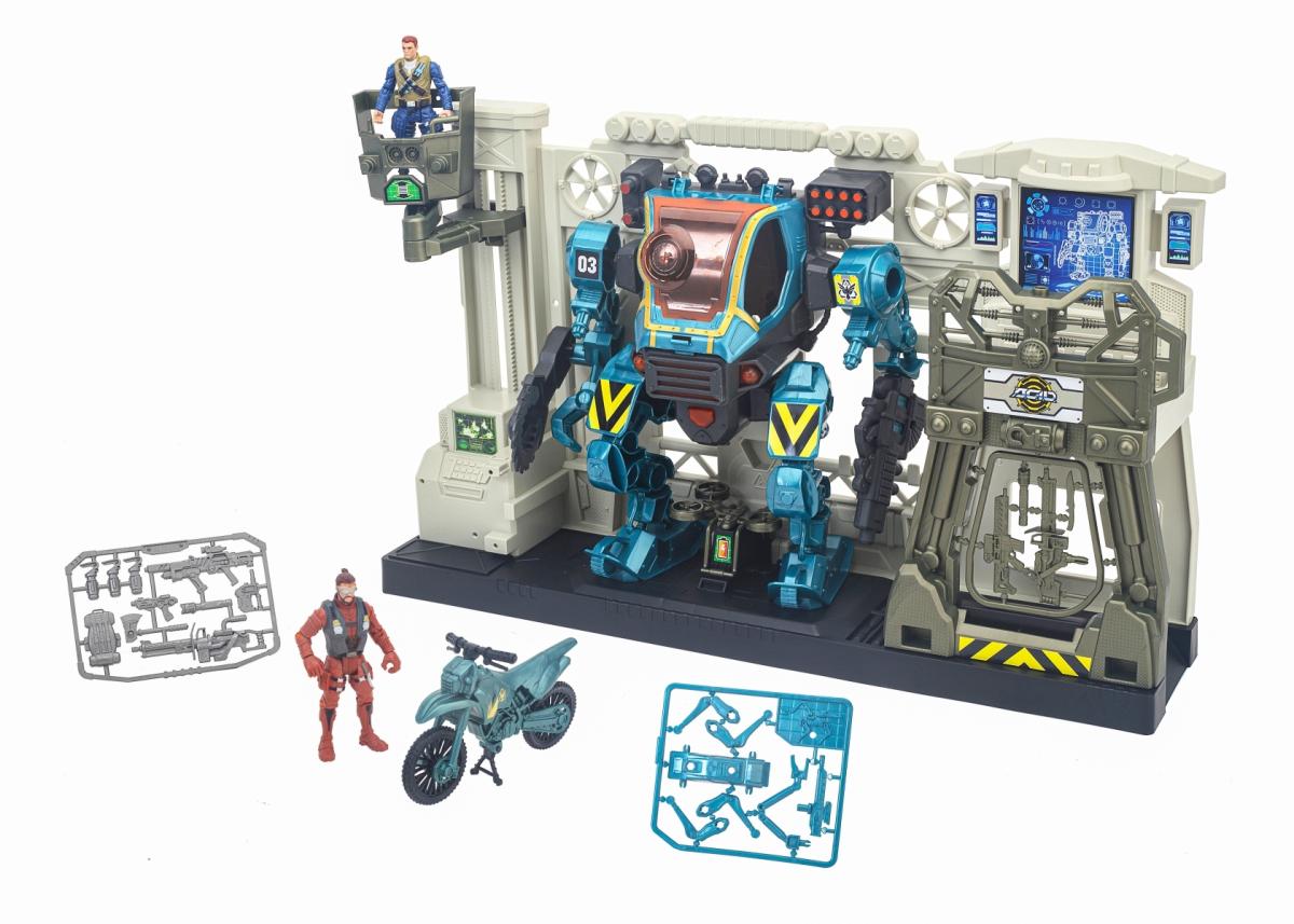 A.C.I.D. mängukomplekt Ex-Mech Mobile Mod Base transformeri ja relvadega.Toote omadused:Komplektis oleval figuuril on palju liigenduspunkte, nii et seda saab paigutada paljudesse võitluspoosidesse.Transformeril on valgus- ja heliefektid, liigutatavad osad.Komplektis on ka realistlikud mängurelvad.