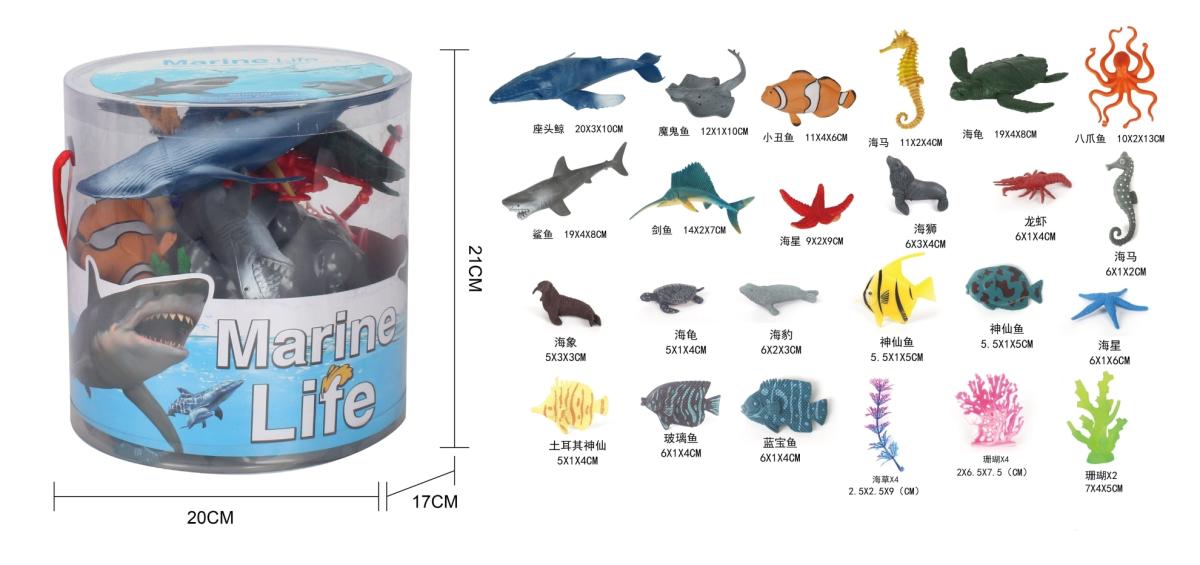 Suur mereloomade kujukeste komplekt.Omadused:Komplekti kuulub palju erinevaid mereloomade kujukesi ja muid tarvikuid.Loomad aitavad lapsel õppida ja huvi tundma meres elutseva vastu.