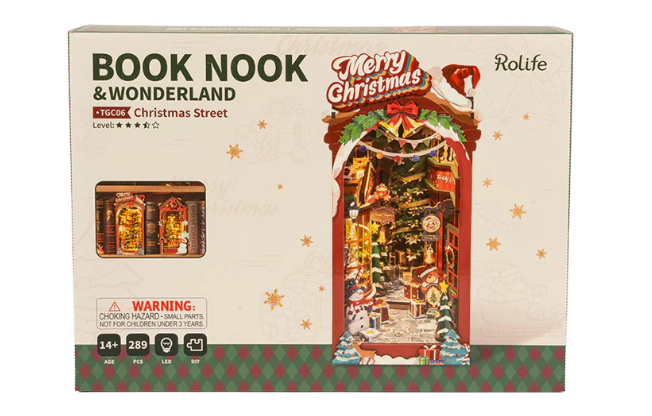 Too jõulumeeleolu oma raamaturiiulisse jõulukodu raamatunurgaga!Omadused:Miniatuurne maja kujutab hubast jõuludeks kaunistatud elutuba, kus on jõulupuu, kingitused ja kamin.Stseenil on jõuluvana sukad, grammofon, traditsioonilised jõululaulud ja tähelepanu köitev kutsikas.Inglikaunistused ja õues sadav lumi loovad tõelise piduliku atmosfääri.Komplekt sisaldab 206 osa.Kokkupanekuaeg: umbes 3 tundiKokkupandud mudeli mõõtmed on 13,6 x 21,8 x 24,7 cm