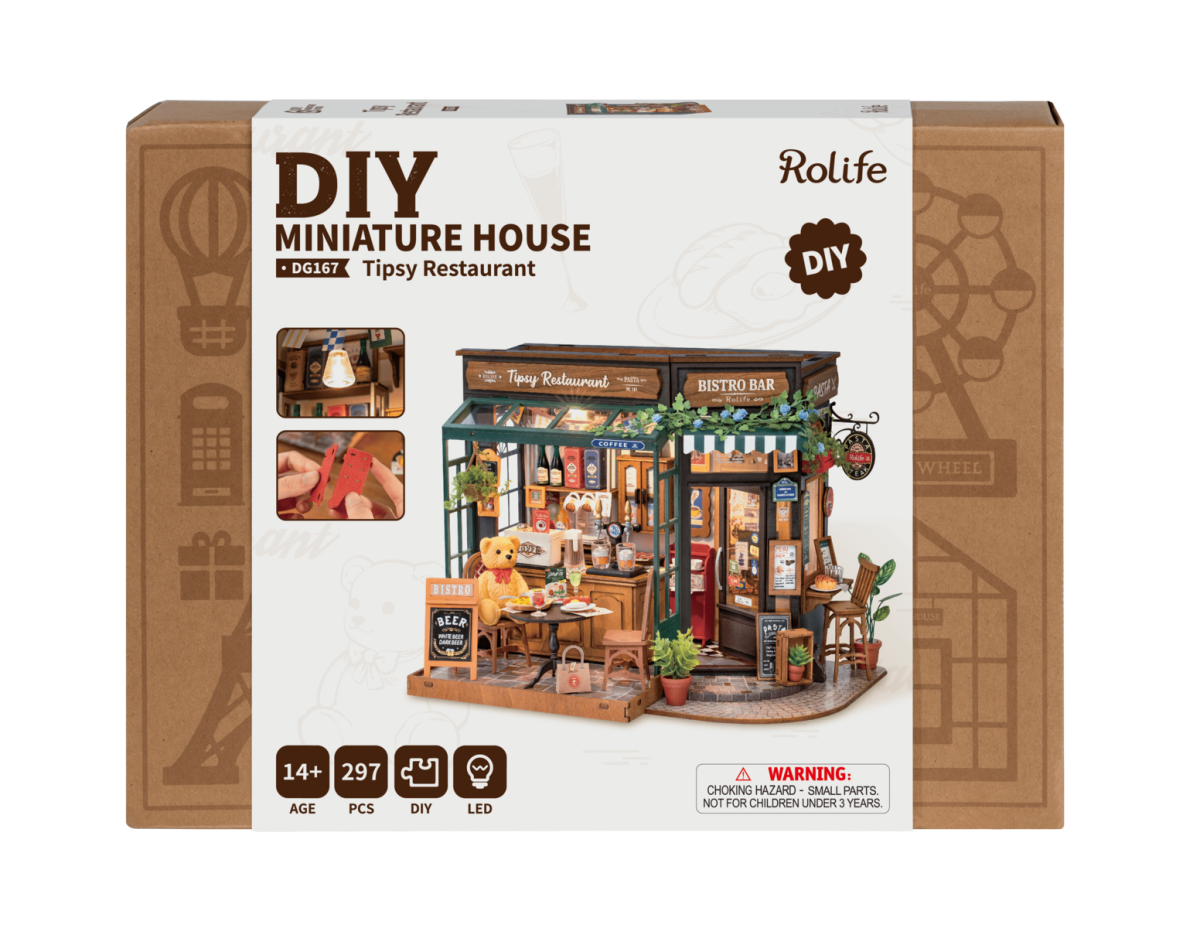 Avasta käsitöö rõõm ainulaadse tee-ise miniatuurse komplektiga! See „tee-ise“ (DIY) miniatuurne majakomplekt võimaldab kogeda kogu loomingulist protsessi – alates värvimisest kuni kokkupanekuni.Omadused: Komplekt pakub võimalust joonistada, õmmelda, voltida, kokku panna ja kaunistada – kõik ühes karbis! Üksikasjalikud, samm-sammult illustreeritud juhised. Iga vajalik detail (puidust plaadid, värvid, kangad, helmed, LED-tuled) on pakitud eraldi kottidesse. Vajalikud ainult kaks patareid LED-valgustusele. Kuni 20 tundi kaasahaaravat tegevust laste või sõpradega. Lülitu ekraanidest välja ja loo koos midagi erilist! Miniatuuridel on ajatu võlu – need sobivad suurepäraselt sünnipäevaks, jõuludeks, emadepäevaks või mõneks muuks eriliseks sündmuseks. Valmis projektist saab stiilne kodukaunistus, mis üllatab iga vaatajat. Soovi korral võid lisada ka isiklikke aktsente! Tehniline teave: Skaala: 1:24 Valmis maja suurus: 22 × 19 × 21 cm (8,7 × 7,5 × 8,3 tolli) LED-valgustus: Vajalikud 2 patareid (ei kuulu komplekti)