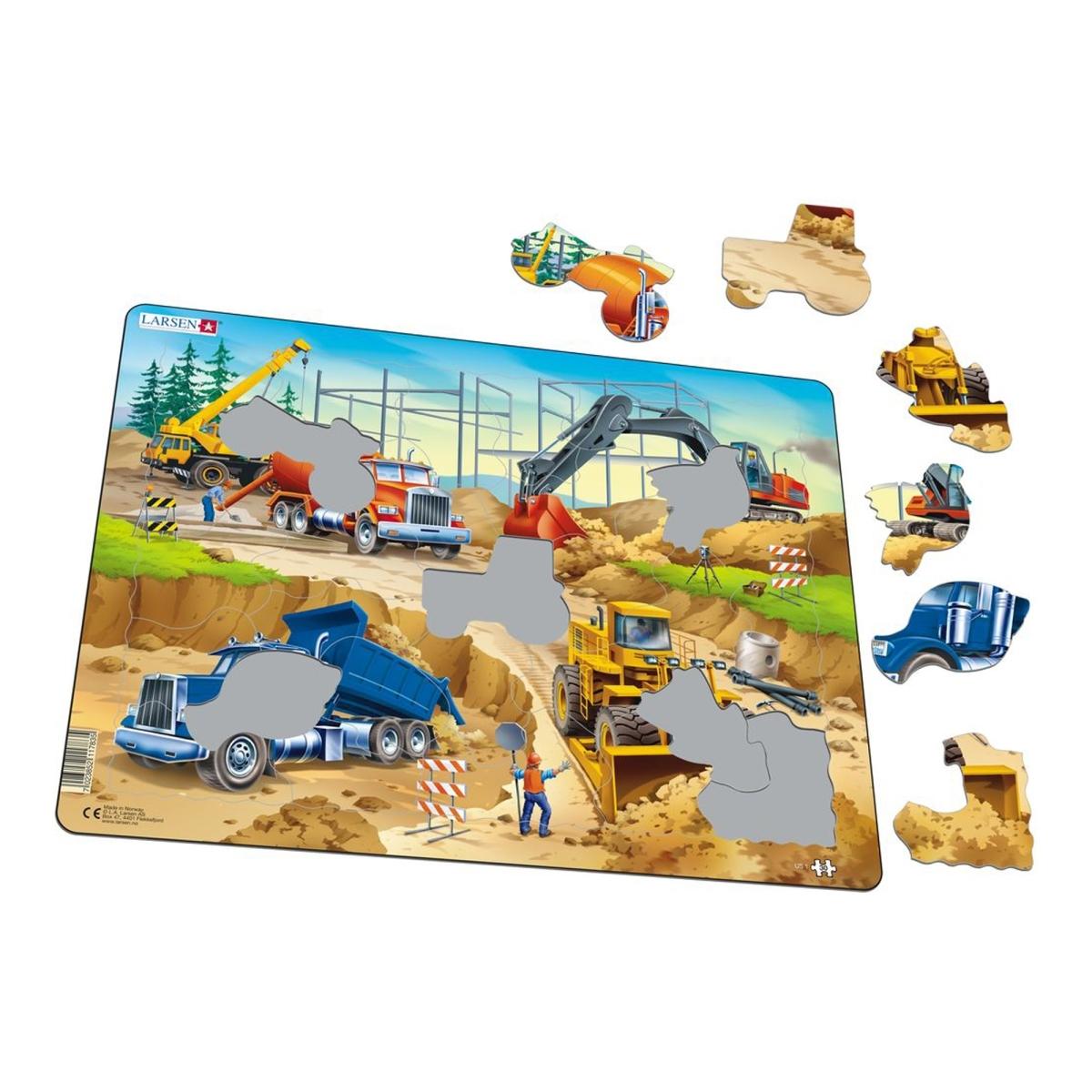 Eksklusiivne LARSENi pusle lõbusa kujuga tükkidega, mis kujutavad lõbusat ehitusplatsi.Omadused:Pusle asetatakse 2,5 mm paksusele papist alusele.Huvitava kujuga detailid pole mitte ainult lõbusad, vaid ka harivad.Osade arv: 30Mõõdud: 36,5 x 28,5 cm