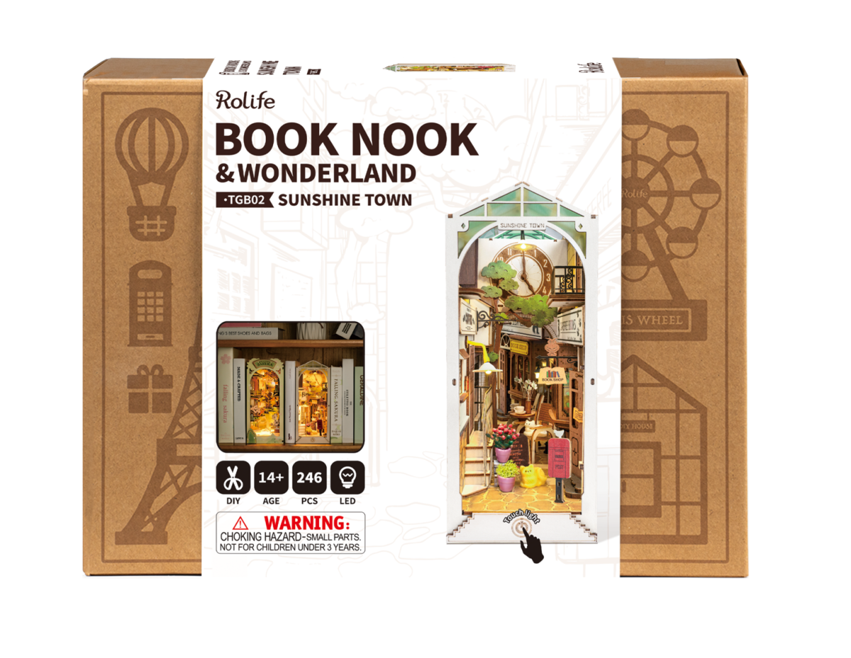 Loo oma muinasjutuline nurk – 3D puidust raamatusildi komplekt „Sunshine Town“. See „tee-ise“ komplekt taastab võluva tänava vaate kevadel ja saab olema unikaalne dekoratiivne aksessuaar sinu raamaturiiulil või toas. Sobib suurepäraselt loominguliseks ajaveetmiseks nii lastele kui täiskasvanutele.Põhiomadused: 3D puidust raamatusildi mudel. Sobib kasutamiseks raamaturiiuli või toa dekoratiivse vaheklambrina. Sisseehitatud soojad LED-tuled loovad pimedas hubase atmosfääri. Detailid on eelnevalt värvitud, võimalik on soovi korral lisavärvimine. Arendab kujutlusvõimet ja loovust – suurepärane kingitus nii lastele kui täiskasvanutele. Kokkupanek arendab peenmotoorikat ja kannatlikkust. Pakendis on oluline info – soovitame säilitada. Lapsed peavad töötama täiskasvanu järelevalve all, kuna komplekt sisaldab väikeseid osi. Tehniline teave: Vajalikud patareid: 2 x AAA (ei kuulu komplekti) Tollipoliitika tõttu võivad liimid ja patareid puududa Mõõtmed: umbes 18 × 11 × 23 cm (sõltuvalt mudelist) Materjalid: kvaliteetne vineer, papp, plastik