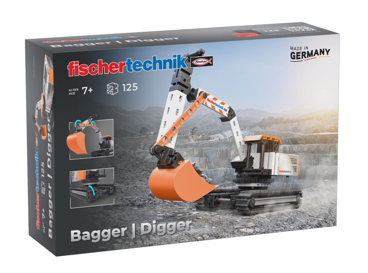 Fischer Techniku ekskavaatoriga muutub iga ehitusplats seikluseks!Omadused:Liikuv poom ja kopamehhanism võimaldavad kaevata auke ja liigutada materjale.Lihtsalt kokkupandav mudel arendab tehnilist mõtlemist ja loovust.Tugevad osad ja moodne värvikombinatsioon muudavad ekskavaatori laste lemmikmudeliks.Osade arv: 125Mudelite arv: 1