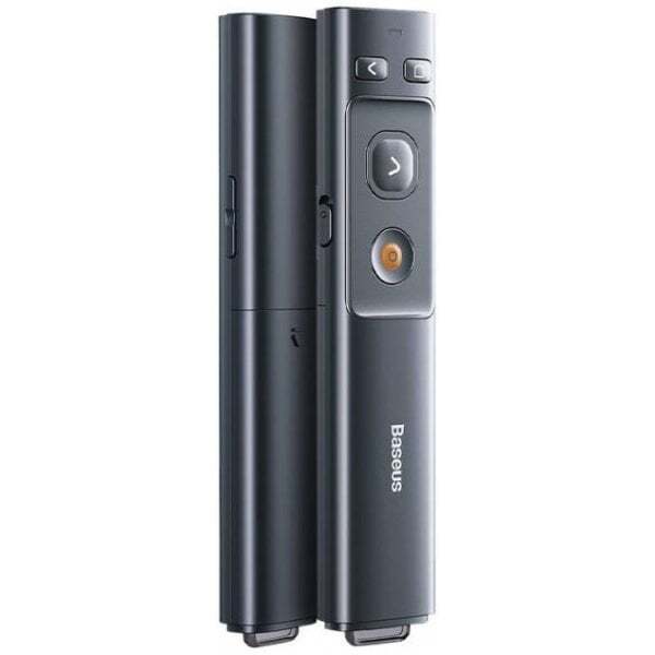 Baseus laser pointer remote control for presentationIf you want to feel more confident during a presentation at work or school, and you are tired of pointing a finger or constantly approaching your laptop to change the slide, this is the device for you.CompatibleThe indicator can be connected both via USB and USB-C, so we can apply it to any computer without the need for additional adapters. Moreover, the device does not need any additional drivers.Even more controlThe device has a built-in laser pointer and the range of the remote control reaches 200 m. This will give you full control over your presentation even from the other end of the room.Hyperlink functionThis feature created for PowerPoint allows you to link to the link in your presentation. Make your presentation even more interesting with the included links.BrandBaseusModelOrange Dot Wireless Presenter (Red Laser)Product codeACFYB-0GConnectionWireless RF2.4 GHzInterfaceUSB + type C (Plug&Play)Supported systemsWindows, macOSLaser pointer range100 mColorGrayFunctionalityLaser pointer, volume control, screen switch-off, tone switchover, USB + type C receiver