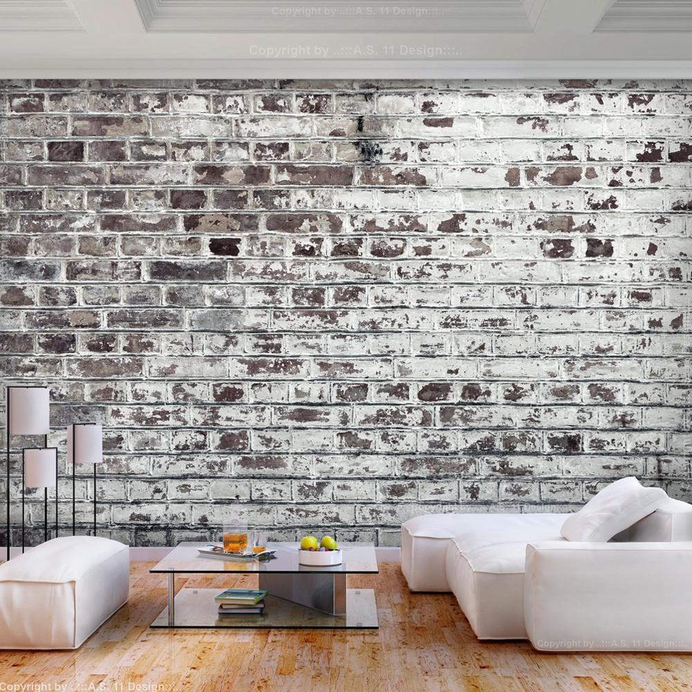 Artgeist Fototapeet Futuristic Duet - Concrete Tile On Old Brick Background, 105 cm x 150 cm