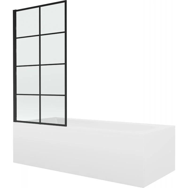 Vann Mexen Vega viimistluse ja klaasseinaga, 170x70 cm + 70 cm, white+I/swing/black grid
