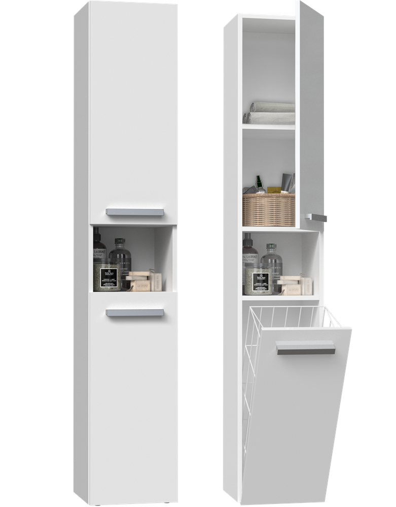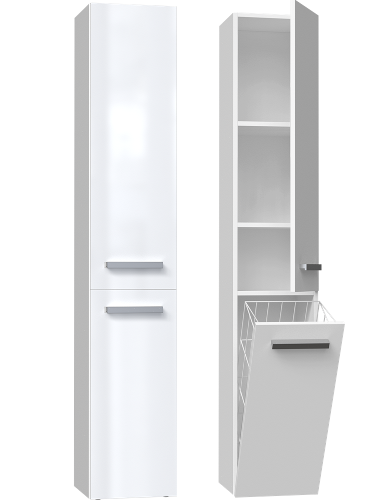 Top E Shop Vannitoa kapp pesukorviga NEL IV Gloss, valge, 30 cm x 31 cm x 174 cm