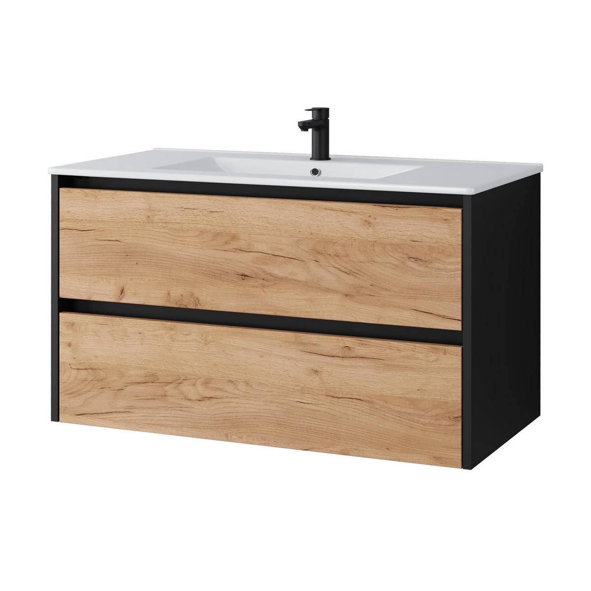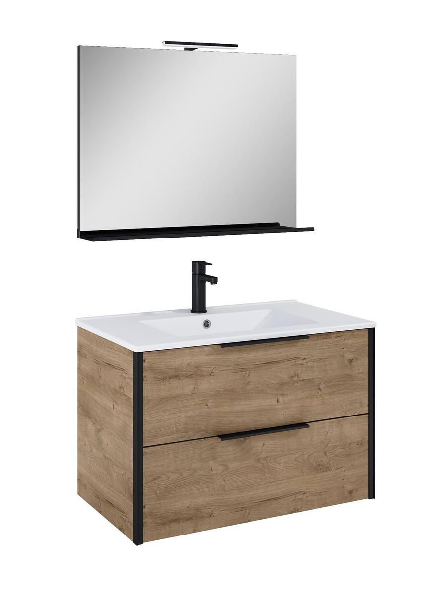 Deftrans Valamualune vannitoa kapp Bari, valge/puidu, 25 cm x 43.4 cm x 75 cm
