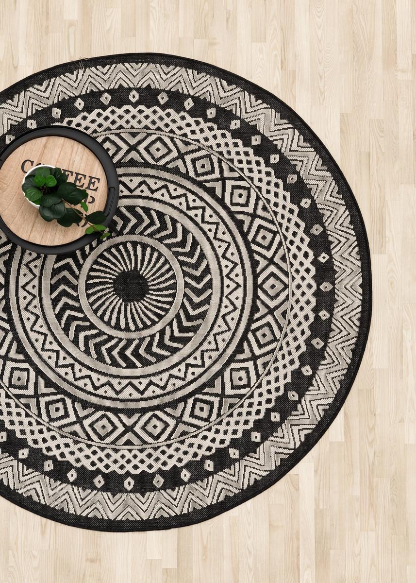 vaip 4Living Vaip väliterrassidele/sise Dali 622933, valge/must, 120 cm x 120 cm