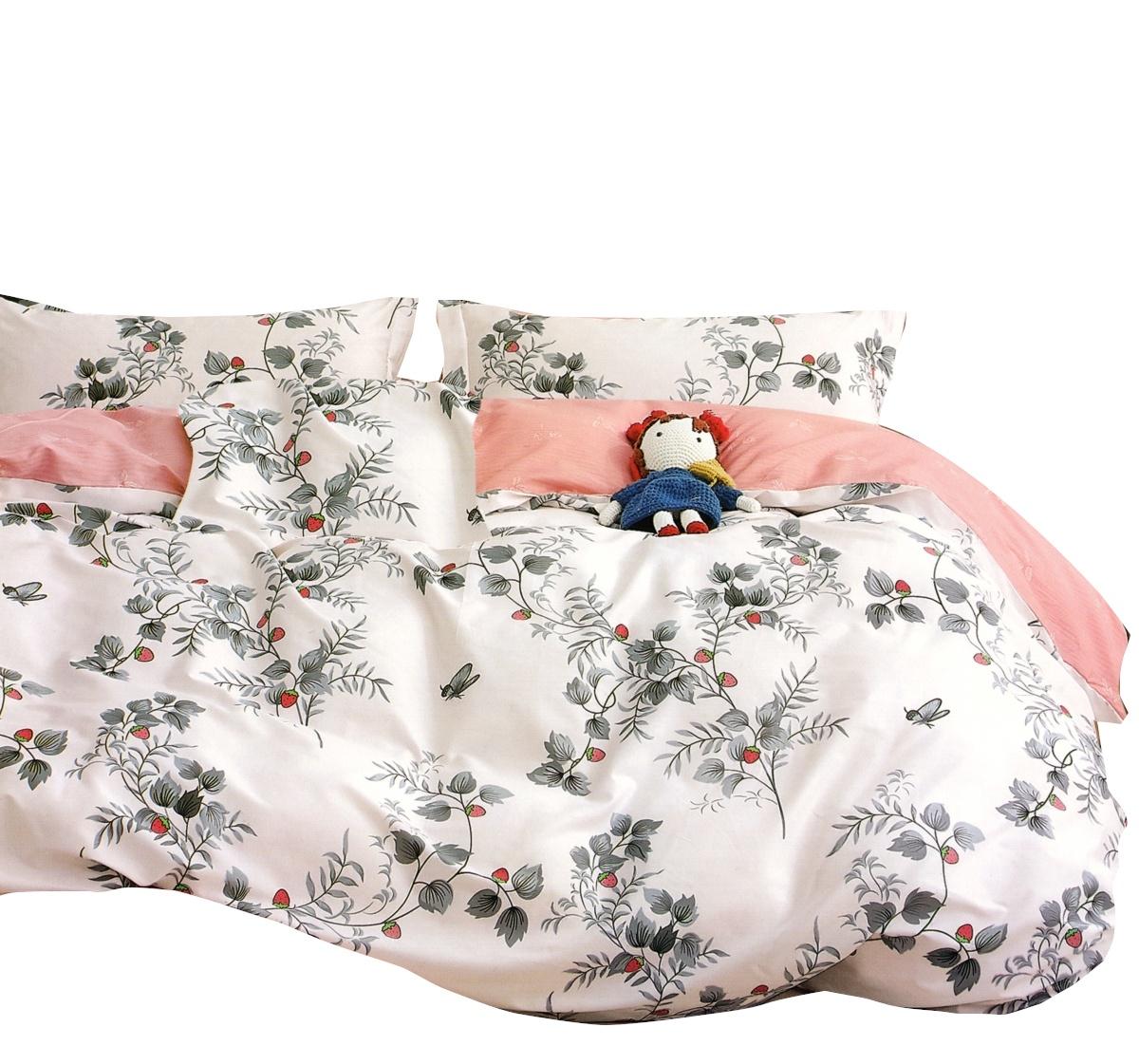- Voodipesukomplekt SB-1805, valge/roosa/hall, 200x220 cm