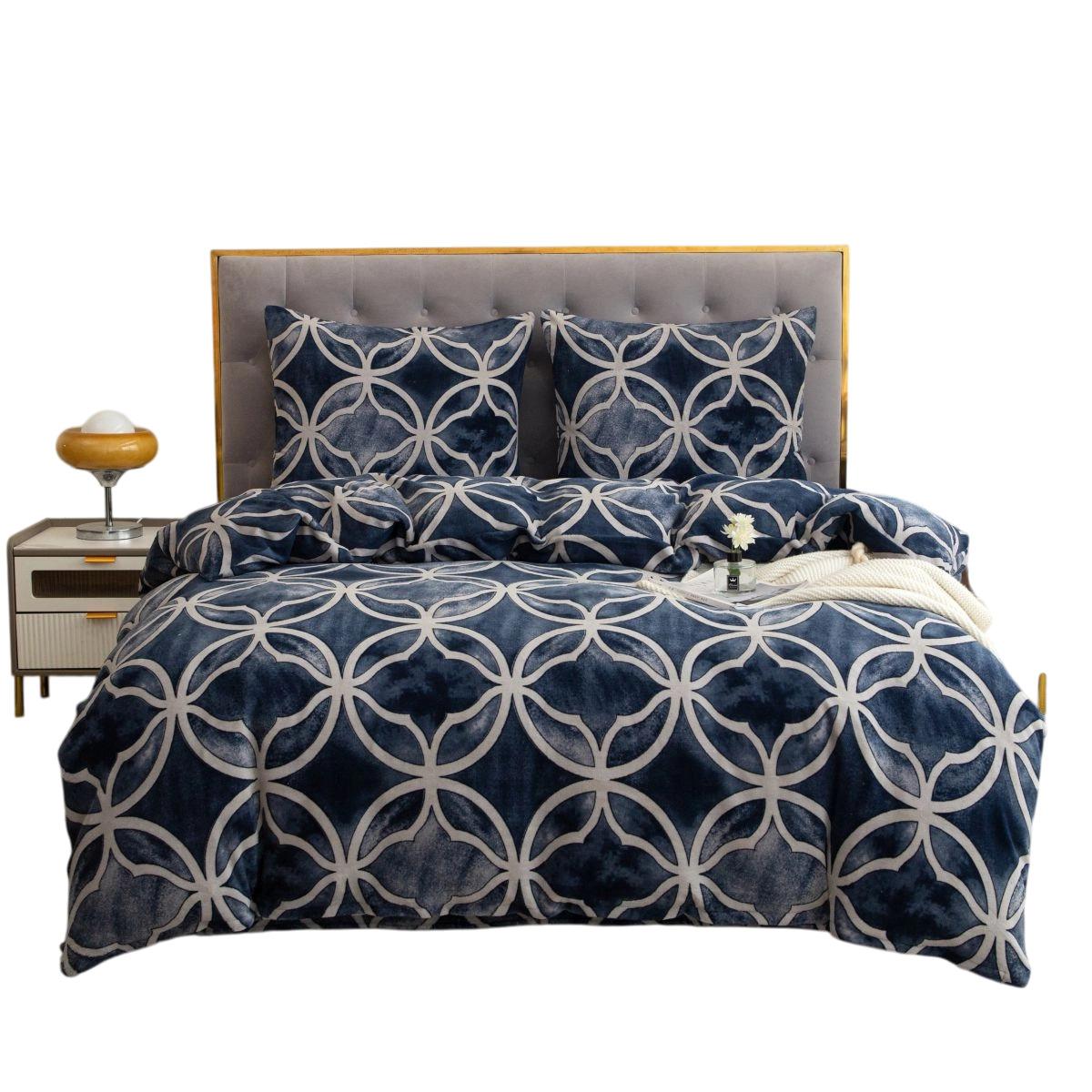 - Voodipesukomplekt SJB-414, valge/must/sinine, 200 x 220 cm