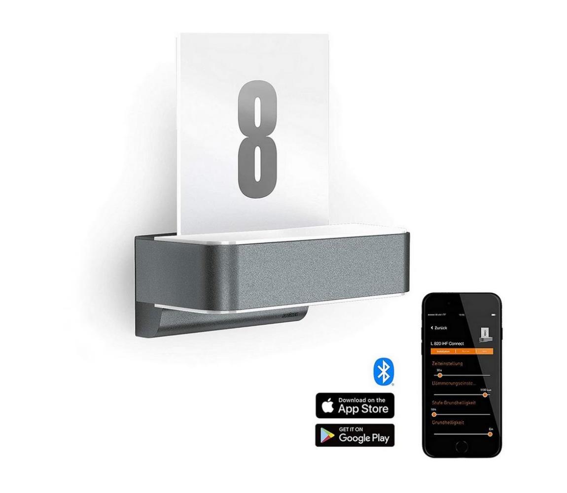 Anduri ja majanumbriga väline LED seinavalgusti. Ideaalne hoonete sissepääsuustele ja fassaadidele (valgustab üles ja alla). 4 intelligentse programmiga andur. Valgustusaja ja hämaruse seadistamise läviväärtus pöördnupuga. Seda saab juhtida ka Bluetooth kaudu, kasutades rakendust SmartRemote (ühilduv iOS ja Android). Valgusti on elegantse pehme algusega. Valikuline põhivalgustuse tase 10% ja 4-tunnine käsitsi juhtimine. 2 teljel reguleeritav tuvastustsoon. Valguse värv: 3000K. Löögikindel materjal IK03. Hämardus seadistus: 2–2000 lx. Valgustusaeg: 5 sekundit kuni 15 min. Põhifunktsioonid: 10/30 min., Terve öö. Anduri ulatus: kuni 5 m. Tuvastusvahemik: 160 °. Paigalduskõrgus: max. 2,5 m. IP44 - valgusti on pritsiva vee eest kaitstud. Komplektis on maja numbritega kleebised.