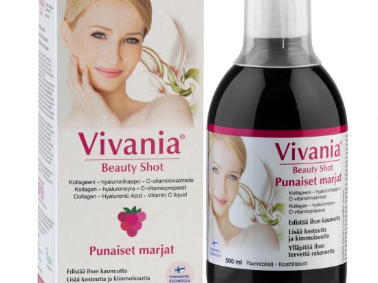 VIVANIA Beauty Shot punased marjad 500 ml Kollageeni, hüaluroonhapet ja C-vitamiini sisaldav toidulisand, mis aitab hoida naha toonust ja elastsust ning niiskustasakaalu. Vivania Beauty Shot sisaldab hüdrolüüsitud Peptan® kollageeni, hüaluroonhapet ja C-vitamiini, mis aitavad kaasa naha struktuuri ja niiskustasakaalule. Peptan® kollageeni molekul on väike, mis tagab kiire organismi imendumise ja toime. Kollageen on kehaomane valk, mis aitab hoida naha normaalsena. Kollageeni leidub ka juustes, küüntes ja liigestes. Hüaluroonhape on samuti kehaomane aine, mida leidub kõigis kudedes. Ta tõstab naha veesidumisvõimet. C- vitamiin aitab kaasa kollageeni normaalsele moodustumisele naha normaalseks talitluseks. Netokogus: 500 ml Tootja: Hankintatukku OY, Karkkila, Soome. Esindaja: OÜ Loodustoode | Laos | 1 | 20,90 € +4,18 € | Vaata | |