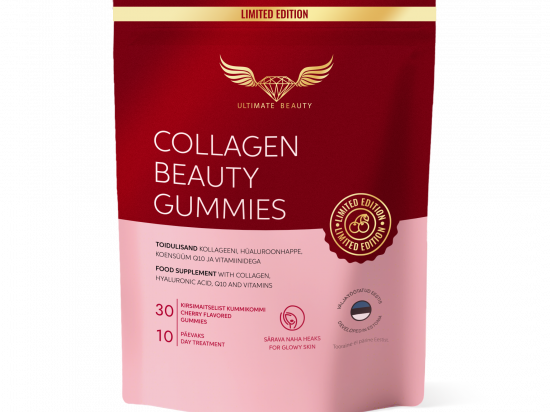 Tootes kasutatud veisekollageen (1500 mg) ja hüaluroonhape (75 mg) lõhustatud väga väikesteks molekulideks, et tagada organismis maksimaalne imendumisvõime. Koensüüm Q10 (30 mg) on kehaomane ensüüm ning tugev antioksüdant, mis osaleb rakkude energiatootmises ja neutraliseerib vabu radikaale, mis põhjustavad naha enneaegset vananemist. Lisaks kollageenile, hüaluroonhappele ja Q10-le, oleme lisanud tootesse C- ja E-vitamiini, mis täidavad 90% päevasest soovitatavast annusest. C-vitamiin (72 mg/90%* NRV) vähendab väsimust ja kurnatust ning mis kõige tähtsam meie toote puhul – toetab kollageeni sünteesi organismis. E-vitamiin (10,8 mg a-TE/ 90%* NRV) on üks parimaid antioksüdante nahahoolduses. See neutraliseerib vabu radikaale, mis on põhjustavad peamiselt naha enneaegset vananemist. E-vitamiin aitab hoida naha niisutatuna ja elastsena. E-vitamiin koos moodustab koensüüm Q10-ga superpower kombo – tõhus kaitse oksüdatiivse stressi vastu. Olulised faktid Meie tootes sisalduvad koostisosad on valitud teadusuuringute põhjal ning toimima omavahel sünergias – üks toitaine toetab imendumisel teist, moodustades terviku ideaalseks nahahoolduseks. Retsept on väljatöötatud pärast põhjalikke uuringuid ja katsetusi koostöös teadlastega ning laboriga. Oleme tootes magustajana kasutanud glükoosisiirupit, mis annab ajule lisaenergiat. Meie südamekujulised kommid on väga suured, rohke toitainete sisalduse tõttu. Päevane annus, 3 üli suurt ja maitsvat kommi, annavad kõigest 38 kalorit, mis näitab, et suhkrusisaldus ei ole üldse suur. Valmistatud ilma kunstlike magus- ja lõhnaaineteta, kahjulike E- ja mahuaineteta. Laktoosi- ja gluteenivaba. Ühest pakist jagub 10 päevaks. Väljatöötatud Eestis! Netokogus: 30tk, 150g Turustaja: UltimateBeauty OÜ