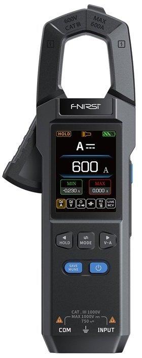 FNIRSI DMC-100 digital clamp meterFNIRSI DMC-100 is a digital clamp meter for universal measurements in electrical installations. The device integrates the functions of measuring current, voltage, resistance and many other parameters, while allowing non-contact voltage testing. Thanks to its clamp design and 25mm diameter bore, the DMC-100 is suitable for both home work and professional service use.Extensive measurement functionsThe meter supports measurement of AC/DC current, AC/DC voltage, resistance, capacitance, circuit continuity, diodes, frequency, temperature, and neutral and phase wire test. Thanks to the NCV (non-contact voltage detection) function, it is possible to quickly check the presence of voltage without the risk of contact with wires.Dual measuring system designThe use of two independent measuring circuits allows simultaneous measurement of voltage and current, with automatic power calculation. This feature speeds up diagnostics and eliminates the need for additional instruments.Measurement accuracy and data recordingThe device offers measurement accuracy based on True RMS technology and a resolution of up to 10000 counts, which guarantees precise readings even for nonlinear signals. The graph and data recording function allows analysis of up to 30 sets of results, with the ability to view the last 8 measurements.Efficient power supplyA built-in 1500 mAh lithium battery ensures long operation without recharging. Protected by a silicone cap, the USB-C connector is protected from dust and damage. The 2" color LCD display and built-in flashlight allow you to work in low visibility conditions.Includedclamp meterUSB-A to USB-C charging cableprobe for measuring temperaturemeasuring cableuser manual ManufacturerFnirsiModelDMC-100DisplayTFT 2.0" color screenPower supplyLithium battery 3.7VChargingUSB Type-C, 5V/1AMaximum clamp diameter25mmDimensions193 × 74 × 32 mmWeight194 gDC voltage range9.999V / 99.99V / 999.9VDC voltage accuracy±(0.5% + 3)AC voltage range9.999V / 99.99V / 750.0VAccuracy of AC voltage±(1% + 3)DC current range99.99A / 600.0AAccuracy of DC current±(2.5% + 10)AC current range99.99A / 600.0AAccuracy of AC current±(2.5% + 10)Resistance range9.999MΩ / 999.9kΩ / 99.99kΩ / 9.999kΩ / 999.9ΩResistance accuracy±(1.5% + 3)Additional resistance range99.99MΩResistance accuracy±(1.5% + 3)Capacitance range999.9μF / 99.99μF / 9.999μF / 999.9nF / 99.99nF / 9.999nFAccuracy of capacitance±(2.0% + 5)Additional capacitance range9.999mF / 99.99mFAccuracy of capacitance±(5.0% + 20)Frequency range9.999MHz / 999.9kHz / 99.99kHz / 9.999kHz / 999.99Hz / 99.99Hz / 9.999HzFrequency accuracy±(0.1% + 2)Temperature range(-55 ~ 1300°C) / (-67 ~ 2372°F)Temperature accuracy±(2.5% + 5)Diode / continuity / NCV / phase wire test (LIVE)yes