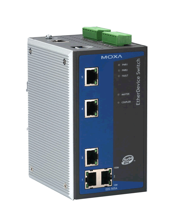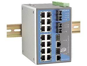 Moxa's Layer 2 managed switches feature industrial-grade reliability, network redundancy, and security features based on the IEC 62443 standard. We offer toughened, industry-specific products with multiple industry certifications, such as parts of the EN 50155 standard for rail applications, IEC 61850-3 for power automation systems, and NEMA TS2 for intelligent transportation systems. Ethernet Interface Combo Ports (10/100/1000BaseT(X) or 100/1000BaseSFP+) 2 Full/Half duplex mode Auto MDI/MDI-X connection Auto negotiation speed PoE Ports (10/100BaseT(X), RJ45 connector) 4 Full/Half duplex mode Auto MDI/MDI-X connection Auto negotiation speed Standards IEEE 802.1D-2004 for Spanning Tree Protocol IEEE 802.1p for Class of Service IEEE 802.1Q for VLAN Tagging IEEE 802.1s for Multiple Spanning Tree Protocol IEEE 802.1w for Rapid Spanning Tree Protocol IEEE 802.1X for authentication IEEE 802.3 for 10BaseT IEEE 802.3ab for 1000BaseT(X) IEEE 802.3ad for Port Trunk with LACP IEEE 802.3u for 100BaseT(X) and 100BaseFX IEEE 802.3x for flow control IEEE 802.3z for 1000BaseSX/LX/LHX/ZX Ethernet Software Features Filter 802.1Q VLAN, GMRP, GVRP, IGMP v1/v2/v3, Port-based VLAN Industrial Protocols EtherNet/IP, Modbus TCP, PROFINET Management Back Pressure Flow Control, BOOTP, DDM, DHCP Option 66/67/82, DHCP Server/Client, Fiber check, Flow control, IPv4/IPv6, RARP, RMON, SMTP, SNMP Inform, SNMPv1/v2c/v3, Syslog, Telnet, TFTP MIB Bridge MIB, Ethernet-like MIB, MIB-II, P-BRIDGE MIB, Q-BRIDGE MIB, RMON MIB Groups 1, 2, 3, 9, RSTP MIB Redundancy Protocols Link Aggregation, MSTP, RSTP, STP, Turbo Chain, Turbo Ring v1/v2 Security Broadcast storm protection, HTTPS/SSL, MAC ACL, TACACS+, MAB authentication, Sticky MAC, NTP authentication, Port Lock, RADIUS, SSH Time Management IEEE 1588v2 PTP (software-based), NTP Server/Client, SNTP Switch Properties IGMP Groups 256 Jumbo Frame Size 9.6 KB MAC Table Size 8 K Packet Buffer Size 12 Mbits Priority Queues 4 Max. No. of VLANs 64 VLAN ID Range VID 1 to 4094 USB Interface Storage Port USB Type A LED Interface LED Indicators PWR1, PWR2, STATE, FAULT, 10/100M (TP port), 10/100/1000M (Gigabit Combo port), MSTR/HEAD, CPLR/TAIL, PoE Serial Interface Console Port USB-serial console (Type B connector) Input/Output Interface Digital Input Channels 1 Digital Inputs Max. input current: 8 mA +13 to +30 V for state 1 -30 to +3 V for state 0 Alarm Contact Channels 1, Relay output with current carrying capacity of 0.5 A @ 48 VDC Buttons Reset button DIP Switch Configuration Ethernet Interface Turbo Ring, Master, Coupler, Reserve Power Parameters Input Voltage 12/24/48 VDC, Redundant dual inputs Operating Voltage 12 to 57 VDC (> 50 VDC for PoE+ output recommended) Input Current 4.08 A @ 48 VDC Max. PoE Power Output per Port 60 W Connection 2 removable 4-contact terminal block(s) Power Consumption (Max.) Max. 18.96 W full loading without PDs’ consumption Total PoE Power Budget Max. 180 W for total PD's consumption @ 48 VDC input Max. 150 W for total PD's consumption @ 24 VDC input Max. 62 W for total PD's consumption @ 12 VDC input Overload Current Protection Supported Reverse Polarity Protection Supported Physical Characteristics Housing Metal IP Rating IP40 Dimensions 49.1 x 135 x 116 mm (1.93 x 5.31 x 4.57 in) Weight 910 g (2.00 lb) Installation DIN-rail mounting, Wall mounting (with optional kit) Environmental Limits Operating Temperature -40 to 75°C (-40 to 167°F) Storage Temperature (package included) -40 to 85°C (-40 to 185°F) Ambient Relative Humidity 5 to 95% (non-condensing) Standards and Certifications Safety UL 61010-2-201, EN 61010-2-201 EMC EN 61000-6-2/-6-4 EMI CISPR 32, FCC Part 15B Class A EMS IEC 61000-4-6 CS: 10 V IEC 61000-4-4 EFT: Power: 4 kV; Signal: 4 kV IEC 61000-4-5 Surge: Power: 4 kV; Signal: 4 kV IEC 61000-4-2 ESD: Contact: 8 kV; Air: 15 kV IEC 61000-4-3 RS: 80 MHz to 1 GHz: 20 V/m IEC 61000-4-11 DIPs IEC 61000-4-8 PFMF Power Substation IEEE 1613, IEC 61850-3 Edition 2.0 Railway EN 50121-4 Traffic Control NEMA TS2 Vibration IEC 60068-2-6 Bump IEC 61850-3 Edition 2.0 Freefall IEC 60068-2-31 Shock IEC 60068-2-27 MTBF Time 755,167 hrs Standards Telcordia (Bellcore), GB Warranty Warranty Period 5 years