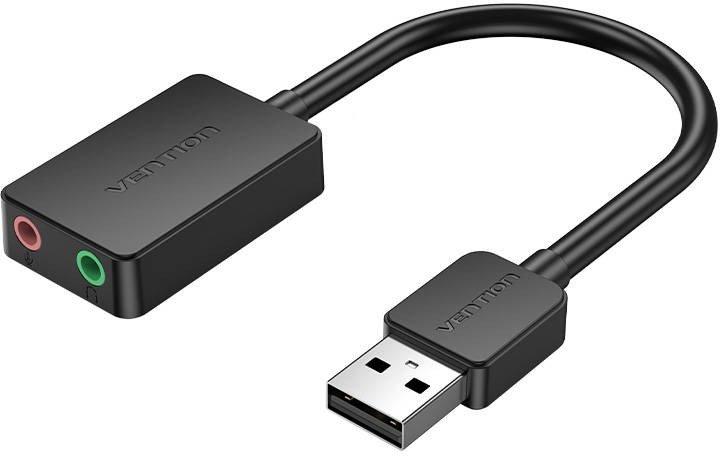 External USB 2.0 sound card Vention CDYB0 2-port 0.15m.The Vention external sound card will help you solve the problem of not having enough jack sockets on your laptop! With its USB2.0 interface, you can easily connect it to multiple devices. It is equipped with an audio and microphone jack, and thanks to the plug&play system you don't have to worry about configuration problems. The compact design means you can take it with you and connect it to any device to fully enjoy excellent sound quality wherever you are.Enhance the capabilities of your laptopThe CDYB0 has 2 dual jack ports that give you even more flexibility to connect various audio devices. You can successfully connect headphones and a microphone at the same time to communicate freely with others. You can also use the external sound card to connect speakers to fully immerse yourself in the sounds of your favorite songs. What's more, the advanced chip effectively reduces ambient noise. Easy installationThanks to the USB2.0 interface, installing the sound card will be no problem for you. The plug&play system will allow you to directly connect the device to your laptop, without installing additional drivers or software. The product is compatible with many operating systems, including Linux, Windows 10 and macOS.ManufacturerVentionModelCDYB0ColorBlackSampling frequency44.1/48K@16bitAWG28Cable length0.15 mMaterialABS + PVCCompatibilityMac OS / Windows 7 / Windows 8 / Windows 10 / LinuxWeight16.2 g