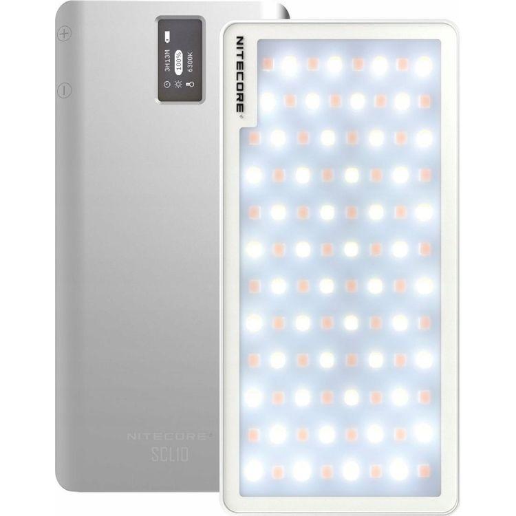 Nitecore SCL10 on 2-ühes seade, mis toimib nii kaameravalgusti kui ka akupangana. Sellel on 96 High CRI LED-i, mis võimaldavad reguleerida värvitemperatuuri kolmel tasemel: 2500K, 4400K ja 6300K. SCL10 sobib suurepäraselt nii fotograafiaks kui ka videote salvestamiseks. Seadet saab laadida USB-C pordi kaudu, ning reaalajas OLED-ekraan kuvab erinevat teavet vastavalt kasutusele.