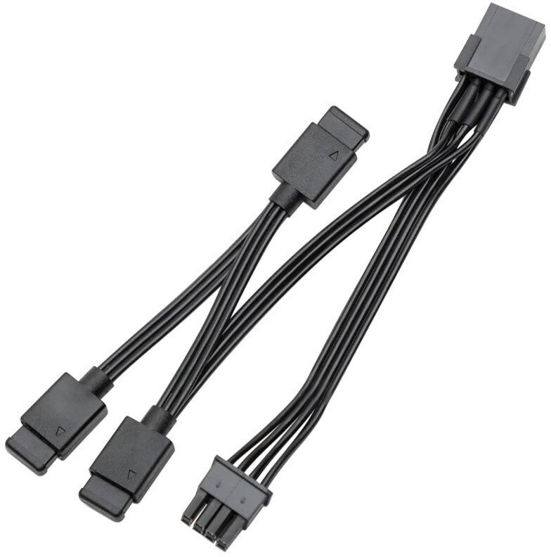 The Kolink ARGB 3-Pin Splitter Cable allows you to extend a D-RGB source in order to create an aesthetically pleasing lighting system. It features standard 3-pin addressable RGB headers from one female connector to two female connectors. Two male-to-male connectors are included. The splitter cable can be used with any standard 3-pin 5V RGB controller or with all common RGB headers from major motherboard manufacturers. The arrow marking on the 3-pin LED connector should be aligned with the +5V marking on the D-RGB header.