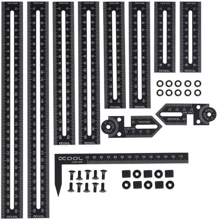 Alphacool Eiskoffer - Measuring Kit With the Alphacool measuring kit, measuring the lengths and angles needed to bend HardTubes accurately is quick and easy. The set includes rulers in different lengths, as well as corresponding angles and a distance metre. With the included screws, all the rulers can be attached to one another and can slide along their guiding slots. This lets you measure not just one angle but several angles and straight sections at the same time. Then, the screws can all be tightened so nothing slides around. Now the whole thing can be placed on a heat-proof surface and the HardTubes can be heated and bent with an Alphacool Heatgun. All components are made of aluminum, guaranteeing high stability and a long lifespan. Scope of Delivery 1x Alphacool Eiskoffer - measuring kit | 1 | 25,50 € | Vaata | ||