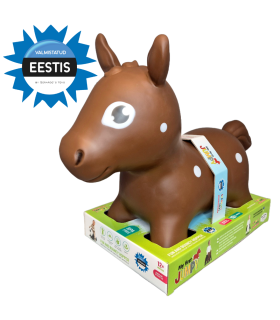 Jumpy on üks vahva hüppeloom, mis pakub lastele palju mängulusti. Hüpates areneb nii lapse tasakaalu tunnetus kui ka tema motoorsed oskused. Lisaks toetab see lapse üldfüüsilist arengut. Toode on valmistatud vastupidavast materjalist, mis on kasutusel ka toiduainete pakendamisel ning on lastele täiesti ohutu. Hüppeloom on sobilik alates esimesest eluaastast ning sellega võib hüpata kuni 100 kg kaaluv inimene, nii et soovi korral saavad ka lapsevanemad koos lastega hüppamist nautida. Hüppeloomaga võib hüpata nii siseruumides kui ka aias muru peal, kuid tasub ettevaatlik olla, et läheduses ei oleks teravaid esemeid. Hüppeloomaga kaasas on ka tema sünnitunnistus. Sinna saab laps oma loomakesele nime panna ning tema sünnipäeva määrata, et ka Jumpyl oleks oma tähtis päev, mida koos tähistada. Hüppelooma mõõdud on 76 x 31 x 44 cm Istumisosa kõrgus 25 cm Komplektis on Jumpy hüppeloom, sünnitunnistus ning käsipump, millega saab looma kiirelt ja lihtsalt täis pumbata.