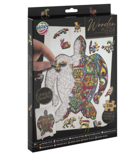 Moxy puidust pusle Kilpkonn. Puidust pusle on valmistatud ainulaadsetest ja ebakorrapärastest tükkidest. Tükid on vormitud väga erinevalt, mille hulgas on ka loomafiguuride kujulisi tükke. Toode on valmistatud FSC puidust. Pusle on kvaliteetne ning pilt erksate värvidega. Laserlõiketehnoloogia tagab, et iga tükk sobitub ideaalselt teiste tükkidega. Kui olete pusle kokku saanud, siis saate kauni raamitud tulemuse asetada kapile või riiulil. Komplekti kuulub raam koos jalgadega. Kasutage seda stressi leevendamiseks pärast pikki töötunde või mõnusa aja veetmiseks pere ja sõprade seltsis. Sobib suurepärane kogu perele! Vanusele 7+ Mõõdud: 30 x 22,5 cm