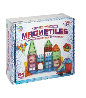Magnetiles ehitusklotsid magnetikomplektiga õpivad lapsed ehitama! Komplektis on 64 osa – erineva värvi ja suurusega ruudud, kolmnurgad, ratastega alus autode ehitamiseks ja kott klotside hoiustamiseks. Pakendi mõõdud 25 x 25 x 10 cm.