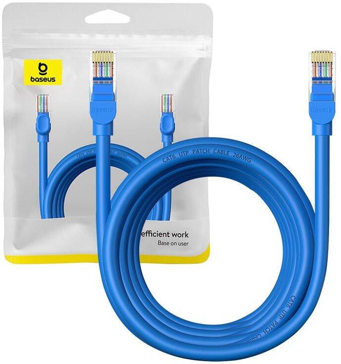 Round Cable Baseus Ethernet RJ45, Cat.6, 5m (blue)The Baseus Ethernet network cable provides a fast and stable connection without interference, so you can work and play games comfortably. What's more, the transmission speed reaches 1000 Mbps, so you can transfer files in no time. In turn, compatibility with various systems allows you to connect the cable to many devices.Fast connection and wide compatibilityWith a transmission speed of 1000 Mbps, you can transfer 1G of files in about 10 seconds - no more waiting too long for your documents, videos or important documents to be copied. The product is perfect for work, watching movies or playing games. It provides a fast and stable Internet connection without delays and interference. You can successfully connect it to your laptop, computer, router, TV or set-top box. It works with systems such as Windows, Apple OS or Linux.Robust designThe cable is distinguished by its carefully considered and robust design. The use of pure 26AWG copper improves signal quality, while aluminum eliminates interference. In addition, the gold-plated connector translates into a better connection. In turn, the PVC plastic finish prevents cable breakage and provides wear resistance.ManufacturerBaseusManufacturer codeB00133204311-04ColorblueMaterialPVCLength5 mTransmission speed1000 Mbps max.Operating systemsWindows, Apple OS, Linux, etc.