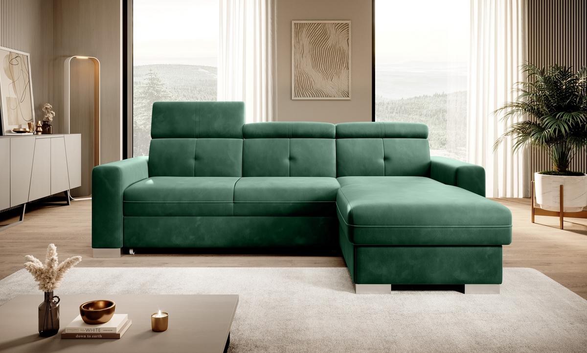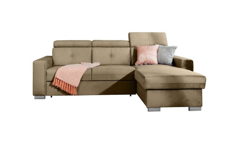 Nurgadiivan Sado mõõtmetega 272 x 192 x 95 cm on mõeldud mugavaks puhkamiseks. Ideaalne filmide vaatamiseks, ideaalne raamatute lugemiseks. Selle põhjuseks on reguleerimisfunktsiooniga profileeritud seljatugi. Mööbel on varustatud ka kokkupandava magamisfunktsiooniga 207 x 130 cm, nii et kui vajadus peaks tekkima, saate Sadost hõlpsasti teha lisavoodi. Nurgadiivani eeliseks on ka väga lihtne ja intuitiivne delfiinmehhanism, mida kasutatakse selle mööblieseme voltimiseks. Lisaks mahub otomani anum hõlpsasti voodikomplekti. Suurepärane panipaik inimestele, kes hindavad ruumi! Märkimist väärib ka mugav profileeritud käetugi ning elegantsed hõbetatud puidust jalad, mis sobivad ideaalselt tänapäevastesse elutuppa. Lisaks saad Sado nurgadiivani jaoks valida paljude kangaste hulgast ulatuslikust ELTAP materjalikollektsioonist.