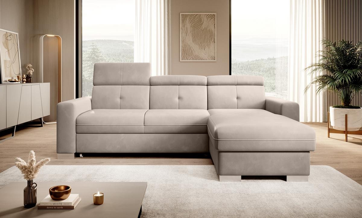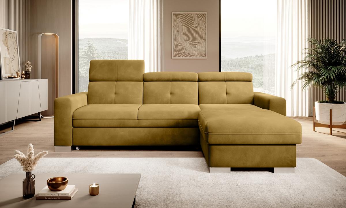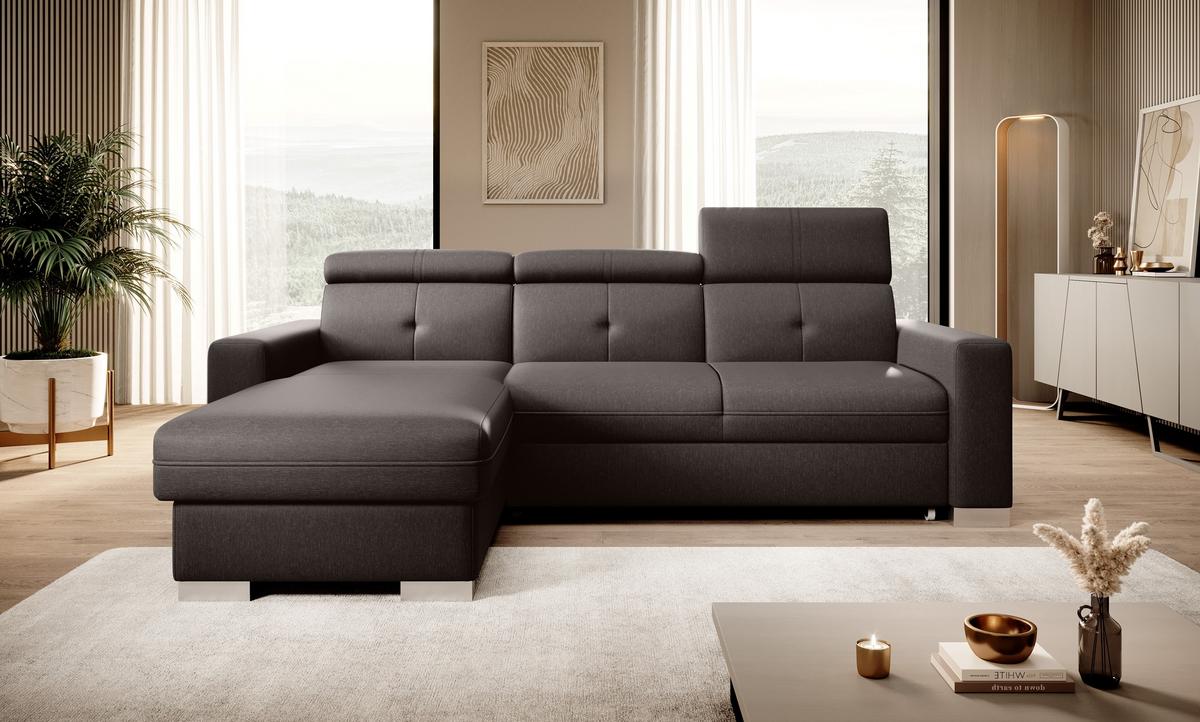 Nurgadiivan Sado mõõtmetega 272 x 192 x 95 cm on mõeldud mugavaks puhkamiseks. Ideaalne filmide vaatamiseks, ideaalne raamatute lugemiseks. Selle põhjuseks on reguleerimisfunktsiooniga profileeritud seljatugi. Mööbel on varustatud ka kokkupandava magamisfunktsiooniga 207 x 130 cm, nii et kui vajadus peaks tekkima, saate Sadost hõlpsasti teha lisavoodi. Nurgadiivani eeliseks on ka väga lihtne ja intuitiivne delfiinmehhanism, mida kasutatakse selle mööblieseme voltimiseks. Lisaks mahub otomani anum hõlpsasti voodikomplekti. Suurepärane panipaik inimestele, kes hindavad ruumi! Märkimist väärib ka mugav profileeritud käetugi ning elegantsed hõbetatud puidust jalad, mis sobivad ideaalselt tänapäevastesse elutuppa. Lisaks saad Sado nurgadiivani jaoks valida paljude kangaste hulgast ulatuslikust ELTAP materjalikollektsioonist.