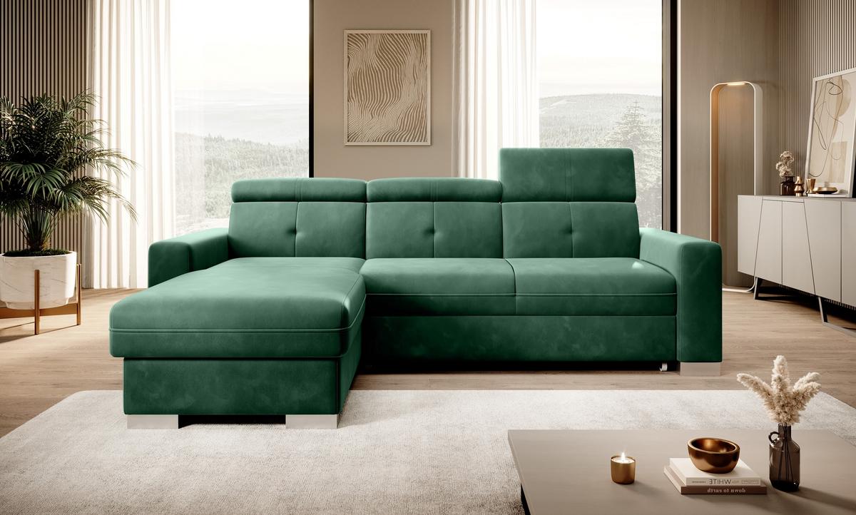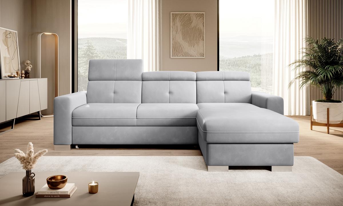 Nurgadiivan Sado mõõtmetega 272 x 192 x 95 cm on mõeldud mugavaks puhkamiseks. Ideaalne filmide vaatamiseks, ideaalne raamatute lugemiseks. Selle põhjuseks on reguleerimisfunktsiooniga profileeritud seljatugi. Mööbel on varustatud ka kokkupandava magamisfunktsiooniga, mille pindala on 207 x 130 cm, nii et kui vajadus peaks tekkima, saate Sadost hõlpsasti teha lisavoodi. Nurgadiivani eeliseks on ka väga lihtne ja intuitiivne delfiinmehhanism, mida kasutatakse selle mööblieseme voltimiseks. Lisaks mahub otomani anum hõlpsasti voodikomplekti. Suurepärane panipaik inimestele, kes hindavad ruumi! Märkimist väärib ka mugav profileeritud käetugi ning elegantsed hõbetatud puidust jalad, mis sobivad ideaalselt tänapäevastesse elutuppa. Lisaks saad Sado nurgadiivani jaoks valida paljude kangaste hulgast ulatuslikust ELTAP materjalikollektsioonist.