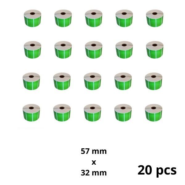 Vaata Dore Zebra 800262-125 57mm x 32mm termopaberist etiketid 25 mm südamikuga, tootja Dore, 20 tk Rohkem Komplekt 20 tk Printerite jaoks: LP 2824, LP 2824 Plus, LP 2824-Z, LP 2844, LP 2844-Z, TLP 2824, TLP 2824-Z, GC420t, GK420t, TLP 2844-Z, TLP 3842, TLP 3844-Z, TLP 2844, GC420d, GK420d, GX420d, GX420t, GX430t, TLP 2824 Plus, LP 2824 Plus, ZD420dt, ZD620dt, Zebra A300, Zebra DA402, Zebra (T)LP2844, Toshiba B-EV4D, Toshiba B-EV4T, Intermec Easycoder C4, Brother TD-4100N, Brother TD2130N Mõõtmed: 57x32mm, 1500 etiketti, südamik - 25 mm. Värv: roheline