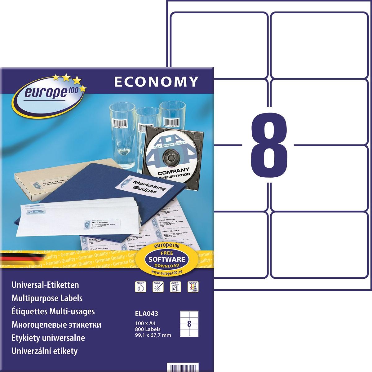Zweckform/Avery Etikett Avery Europe A4/100L 99,1x67,7m* Uus! Universaalsed Europe 100 etiketid ELA043 A4 formaadis leht, lehel 8 kleebist mõõdus 99,1*67,7mm - pakendis 100 lehte Permanentsete kleepsude liimühendus on tugev ja usaldusväärne kõigil üldkasutatavatel siledatel ja puhastel pindadel. Prinditud tekst on terav ja püsib etiketil kindlalt. Liimi jäägid ei satu etikettidelt printerisse. Saadaval palju erinevates suurustes etikette.Multifunktsionaalsed kleepsetiketid sobivad nii koopiamasinatele kui ka laser- ja tindiprinteritele. Avery Economy Europe 100 etikettidel on QCT tehnoloogia, mis võimaldab tõrgeteta printida. Economy kleepsetikette saab kasutada kodus, kontoris, koolis ja lasteaias. Kasutusalasid on palju, näiteks sobivad need postisiltide printimiseks pakkidele ja ümbrikele, kastide/kappide/sahtlite/riiulite markeerimiseks ja organiseerimiseks, kiirköitjate selgade märgistamiseks, nimesiltide printimiseks kaustikutele/töövihikutele/õpikutele, süsteemide loomiseks, inventeerimiseks, erinevate toodete tooteetiketide valmistamiseks, hoidiste (õunamahl, moos, koduvein, hapukurgid...) purkide siltide printimiseks ja veel paljuks muuks! Kui soovid Avery Zweckformi Europe 100 etikettidele printida, soovitame alla laadida tootja poolt koostatud Microsoft Wordi etiketipõhja, et kleebised saaks õigesse suurusesse! Europe 100 kleebiste õiges suuruses põhjad saad tootekoodi järgi allalaadida siia klikkides Täpsem juhend õiges mõõdus Europe 100 kleepsude kujundamiseks ja printimiseks: Soeta sobivad mõõdus kleebisetikett -> Valiku leiad siia klikkides Mine lehele -> https://www.europe100.eu/labels.html Soetatud kleepsude pakilt leiad tootekoodi - näiteks ELA001, ELA024 või ELA049 Otsi lehelt sama kood (Prod.No) ja vajuta punast allalaadimise (Download )nupukest Ava allalaaditud fail ja asu kleepsu kujundama - lisa pilte, teksti, ribakoode - kõike mida soovid Prindi kleeps valides paberi tüübiks sildid (file -> print -> printer properties -> Paper/Quality -> Lables) | Laos | 1 | 12,10 € | Vaata | |