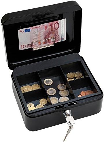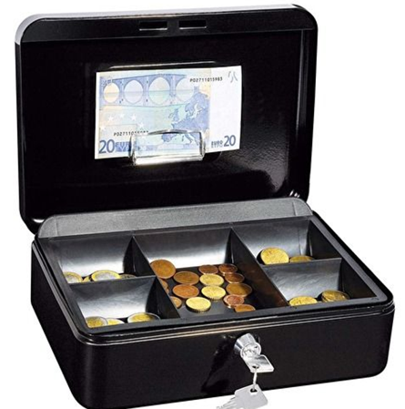 Rahakarp / kassa / miniseif WEDO klambriga (NR 2) 145 221H - MUST Mõõdud 20 x 16 x 9 cm, viie vahega sisu, kaane küljes (seespool) sularahaklamber. Rahakarp on valmistatud tugevast metallist ning on lukustatav (2 võtit komplektis, võtme nr. võtmeluku peal). Kassal on käepide mugavaks kaasas kandmiseks. Sees on must plastikust mündialus (mündialuse kood on karbi sildil). Mündialuse saab karbist lihtsalt välja võtta. Mündialuse all saab hoida paberraha. Kaasaskantavat rahakarpi saab kasutada sularahaga arveldamisel näiteks erinevatel väliüritustel, pidustustel, kontserditel, kohvikutes, kiirtoiduautodes, piletite müügil, laatadel, messidel või kodus rahakassana / kaasaskantava miniseifina. Kui kassa sisu eemaldada sobib ka erinevate esemete kindlaks transpordiks. Saadaval on suur valik erinevates suurustes, värvustes, kujudes ja erinevate sisudega rahakarpe.