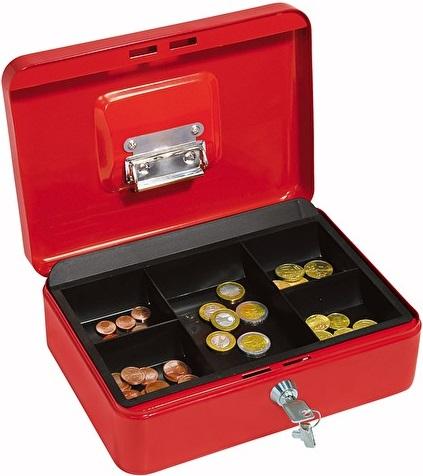 Rahakarp / kassa / miniseif WEDO klambriga (NR 3) 145 302H - PUNANE Mõõdud 25 x 18 x 9 cm, viie vahega sisu, kaane küljes (seespool) sularahaklamber. Rahakarp on valmistatud tugevast metallist ning on lukustatav (2 võtit komplektis, võtme nr. võtmeluku peal). Kassal on käepide mugavaks kaasas kandmiseks. Sees on must plastikust mündialus (mündialuse kood on karbi sildil). Mündialuse saab karbist lihtsalt välja võtta. Mündialuse all saab hoida paberraha. Kaasaskantavat rahakarpi saab kasutada sularahaga arveldamisel näiteks erinevatel väliüritustel, pidustustel, kontserditel, kohvikutes, kiirtoiduautodes, piletite müügil, laatadel, messidel või kodus rahakassana / kaasaskantava miniseifina. Kui kassa sisu eemaldada sobib ka erinevate esemete kindlaks transpordiks. Saadaval on suur valik erinevates suurustes, värvustes, kujudes ja erinevate sisudega rahakarpe.