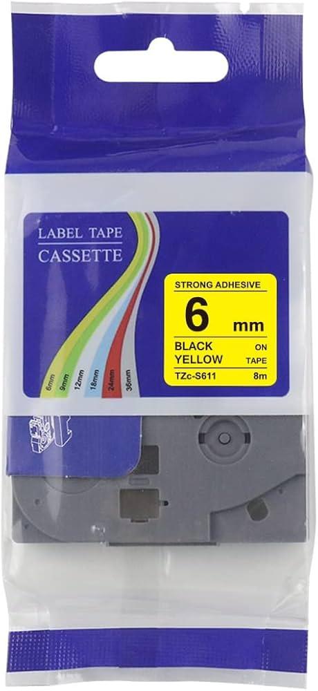 ANALOOG Lint Brother TZE-611 must/kollane 6mmx8m