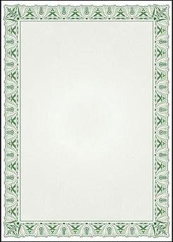 Diplomi põhi, A4 formaadis - Küpros roheline (Cyprus) Sobilikud ka kutsete, tänukirjade, aukirjade, menüüde ja muu sellise tegemiseks. Samuti saab kasutada ka lihtsalt disainpaberina. Diplomipõhjadele saab trükkida kõigi tindi- ja laserprinteritega ning saab kasutada ka koopiamasinas. Lehe grammkaal 170 grammi ruutmeetri kohta. Võimalik osta paki kaupa, pakis 25 lehte. Paki ostmisel hind soodsam. Valikus on kokku ligi 50 erinevat diplomit, lisaks on saadaval diplomikaaned.